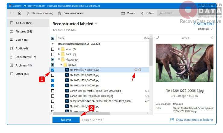 Bước 5: Quá trình quét hoàn tất. Bạn hãy xem lại các tệp sau khi quét và chọn tệp bạn định khôi phục.